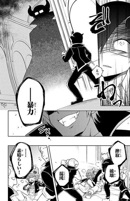 ショッピ 我々だ 漫画 魔界の主役は我々だ 発売まであと4日 ワイのオススメシーンは このページっすね コネシマさんが監修した結果 この邪悪な笑顔になったらしいですよ このシーン以外のメイキング裏話もあるらしいので単行本お楽しみに 魔主役
