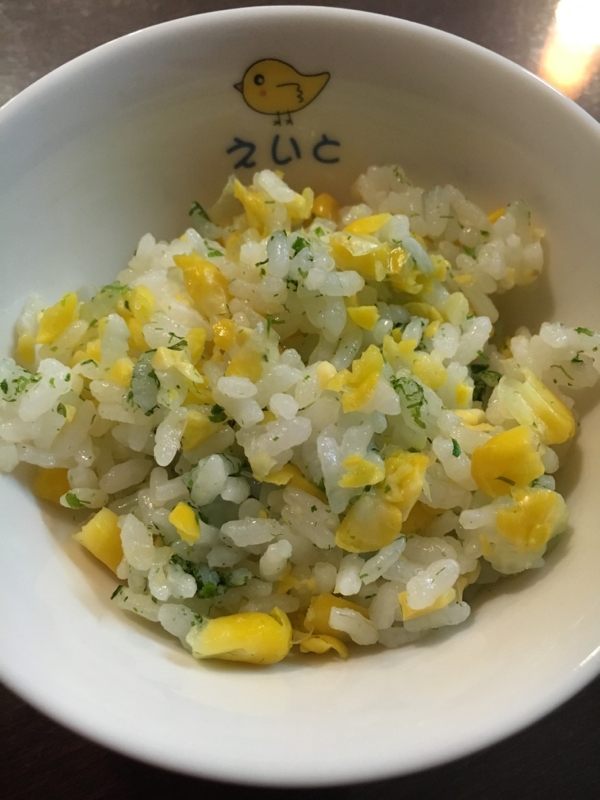 離乳食完了期 コーンと青のりの混ぜごはん レシピ 作り方 By Ha Ru Ko 楽天レシピ
